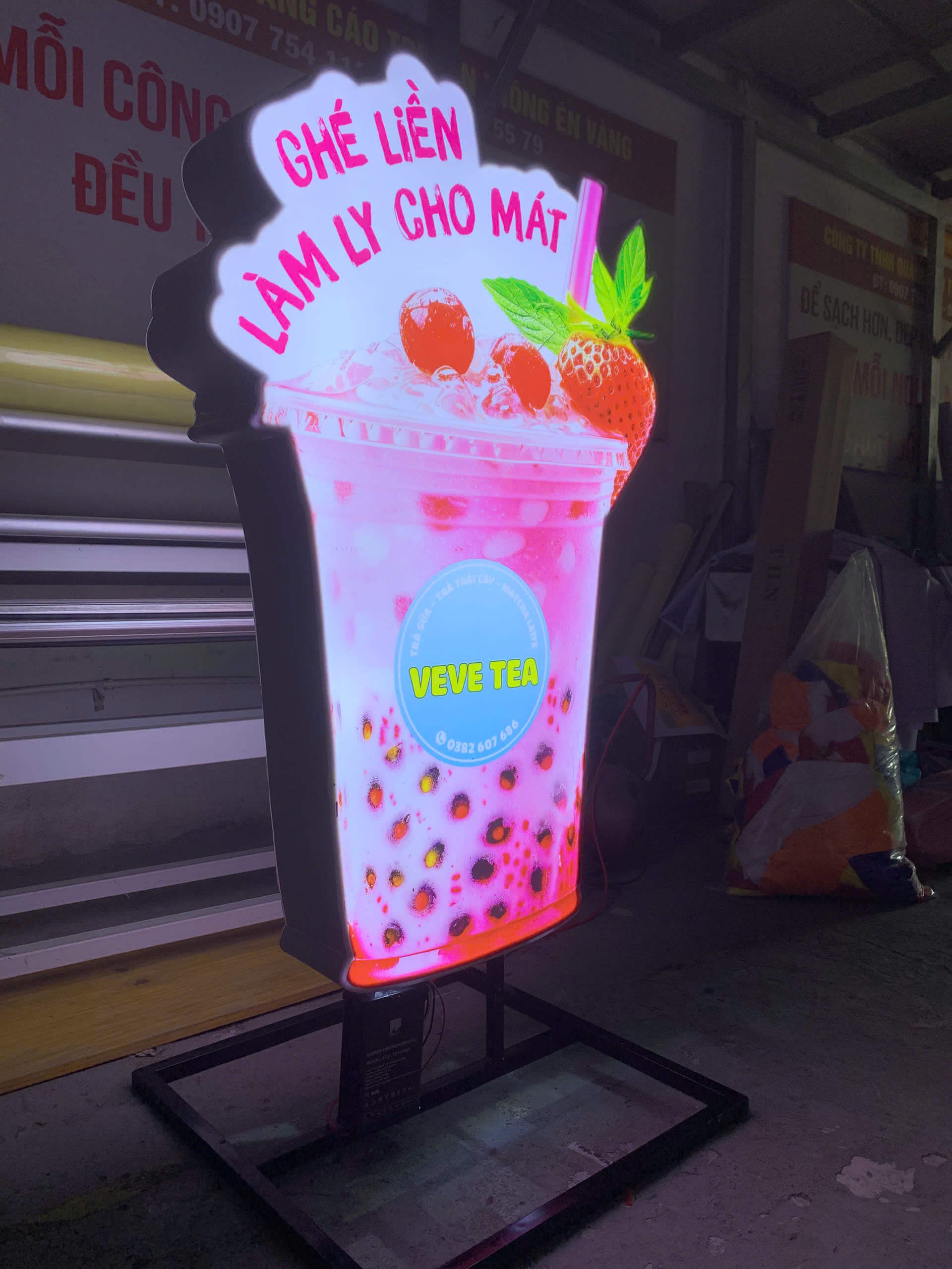 Không chỉ là công cụ quảng cáo, hộp đèn mica còn là một phần décor giúp quán thêm “chất chill”, đậm cá tính.