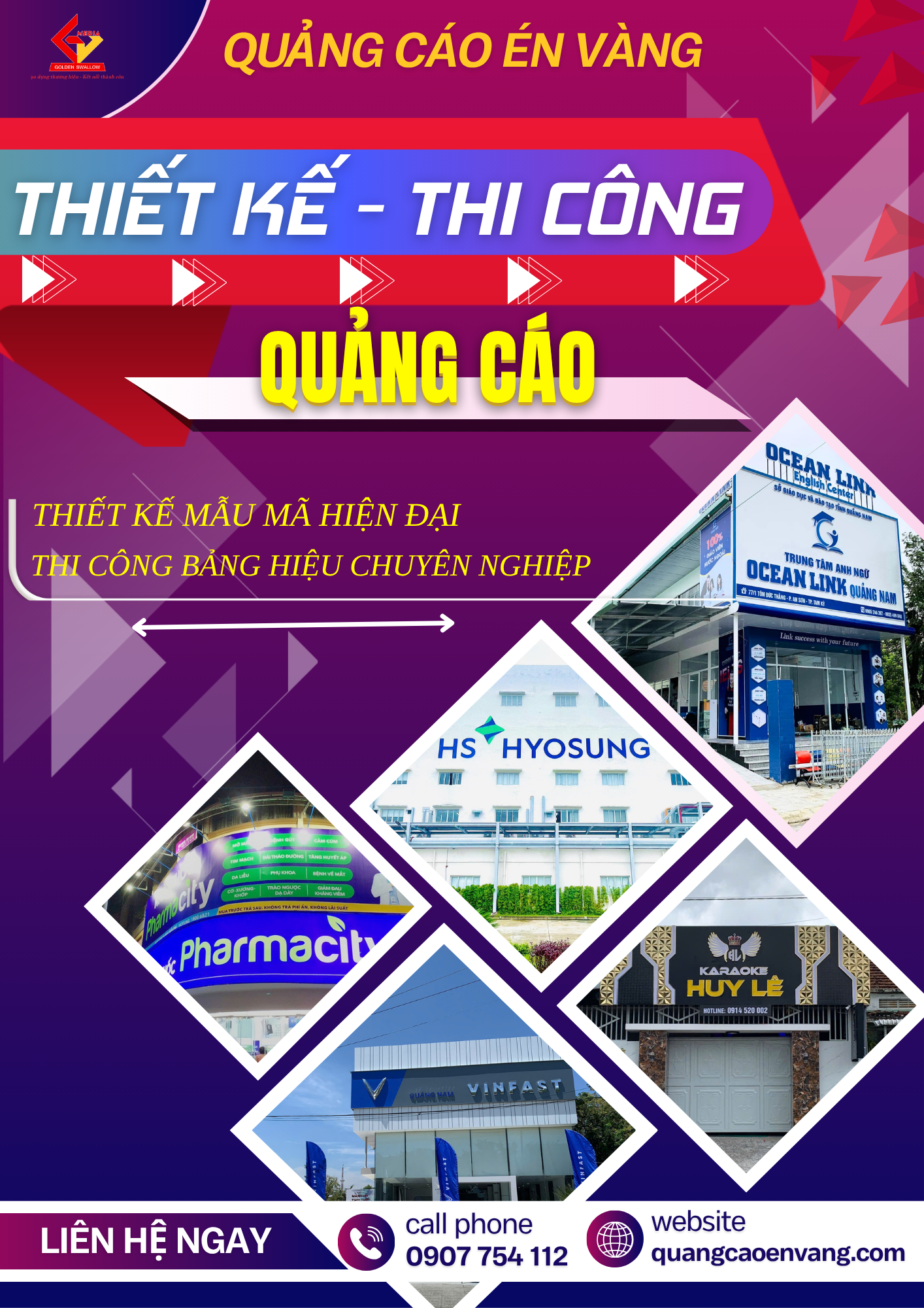 Quảng Cáo Én Vàng là đơn vị chuyên cung cấp giải pháp thiết kế và thi công bảng hiệu quảng cáo, giúp bạn dễ dàng truyền tải thông điệp thương hiệu một cách sáng tạo, chuyên nghiệp và chuẩn thẩm mỹ.